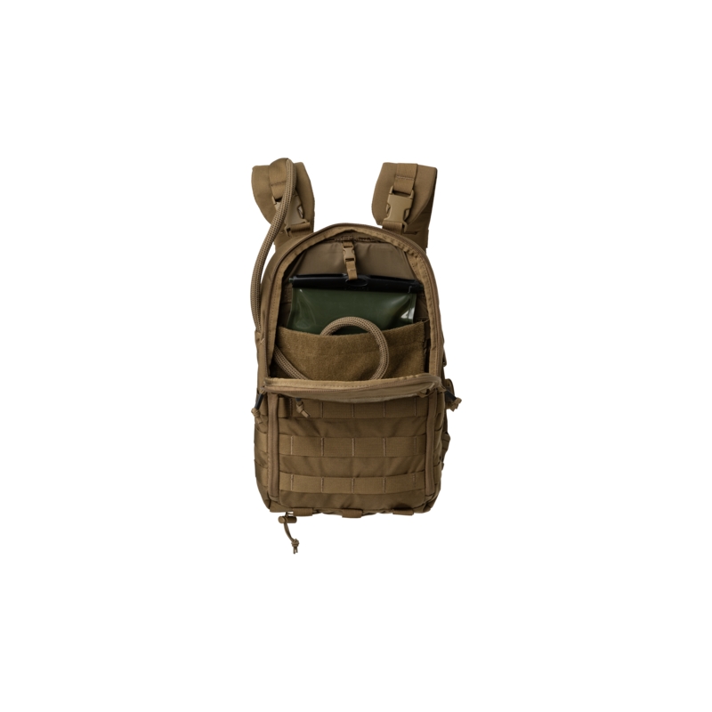The Guardian Smallpack is a compact backpack with a capacity of 7.5 liters, designed primarily for use with the Guardian Plate Carrier, but it can also be worn independently. The interior is lined with soft fleece-like material (VELCRO hook-and-loop), allowing for the attachment of additional accessories like INSERT pockets as needed.