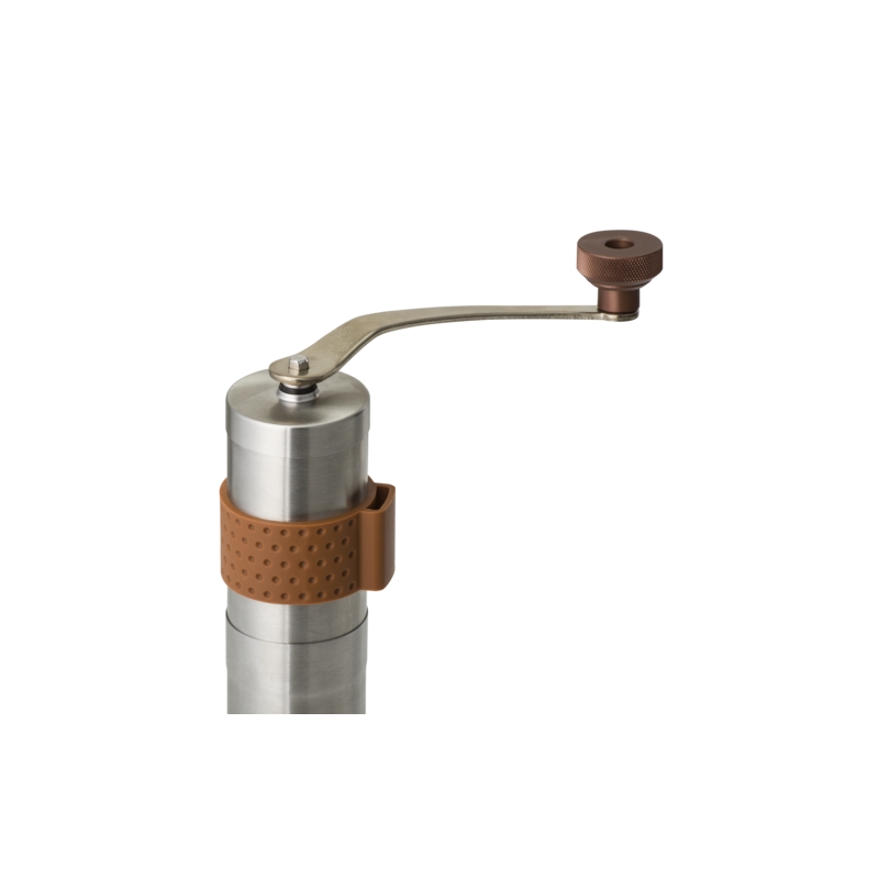 The grinder features a removable handle for easier storage, which is especially appreciated when packing into a backpack. With a capacity of 50 g of coffee, it's ideal for preparing 2-4 cups.