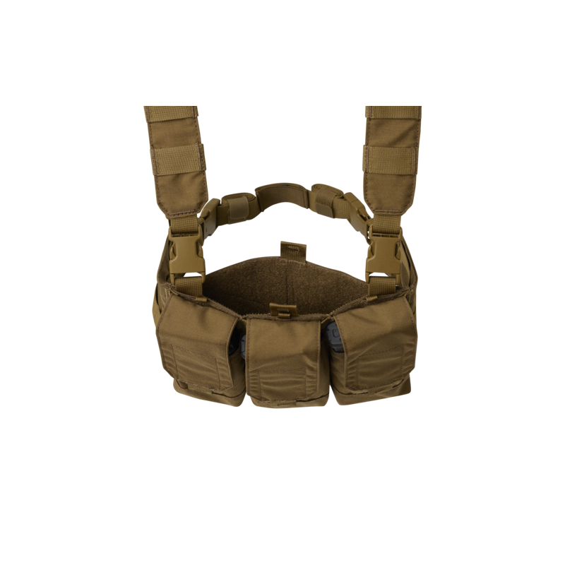 Chest rig je vybavený modulárnym väzbou štandardu MOLLE/PALS na bokoch a ramenných popruhoch, čo umožňuje ľahké rozšírenie o ďalšie príslušenstvo ako sumky na zásobníky alebo univerzálne puzdrá.