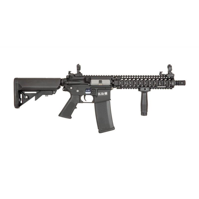 Airsoftová AEG útočná puška MK18 v vylepšenej sérii EDGE 2.0™ od Specna Arms v spolupráci s EMG (Evike Manufacturing Group), ktorá kladie dôraz na špičkové spracovanie tela s licencovaným označením výrobcu strelných zbraní – firmou Daniel Defence.