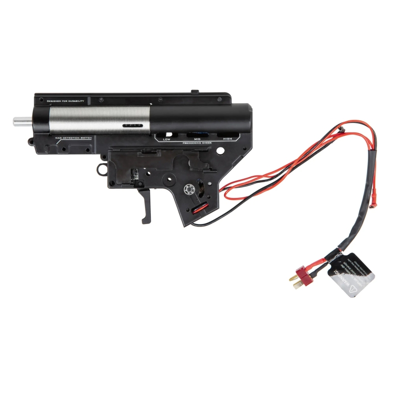 Tá sa stará o bezpečné spínanie a ochraňuje tak vnútorné diely, zlepšuje reakciu spúšte a predlžuje životnosť batérie, zvyšuje tiež kadenciu zbrane a umožňuje bezpečné používanie Li-Pol batérií 7.4V a 11.1V. Konektor pre batérie je T-Dean s vývodom do tubusu pažby.
