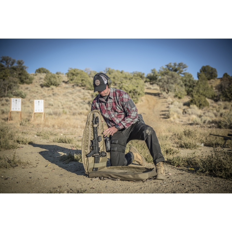 SBR Carrying Bag® je ideálnym riešením pre bezpečný transport krátkych zbraní. Taška pojme zbrane s hlavňou do 10,5 palca bez nutnosti ich demontáže na hornú a dolnú polovicu tela. Zbrane do 16 palcov pojme v rozloženom stave. Okrem toho je možné do batohu uložiť pušky na báze AK so sklopnou pažbou.