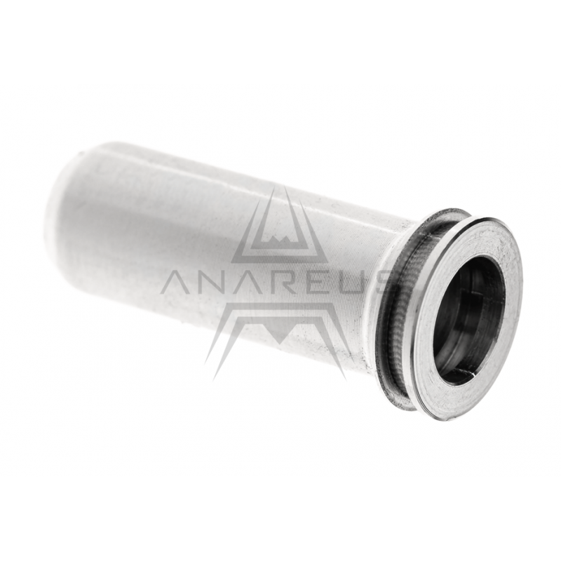 Vzduchová tryska pro NBU hlavu válce (New Bore Up - set vzduchotechniky se zvětšeným objemem vzduchu). Tryska je vyrobena přesným CNC soustružením z automatového duralu EN AW 2007 a má dvojnásobně zvětšený o kroužek oproti původní trysce. I s takto zvětšeným o kroužkem se tryska bezvadně pohybuje po hlavě válce. Těsnící o kroužek je již z výroby nasazen v trysce.