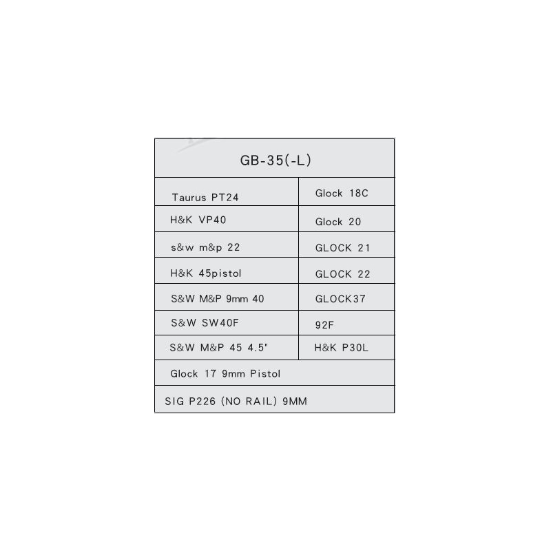 Jeho jedinečný dizajn využíva palcovú poistku v štýle GLS, ktorá udrží pištoľ pevne v puzdre, a nastaviteľný skrutkový mechanizmus pre správne uchytenie rôznych modelov pištolí (viď zoznam kompatibility nižšie).