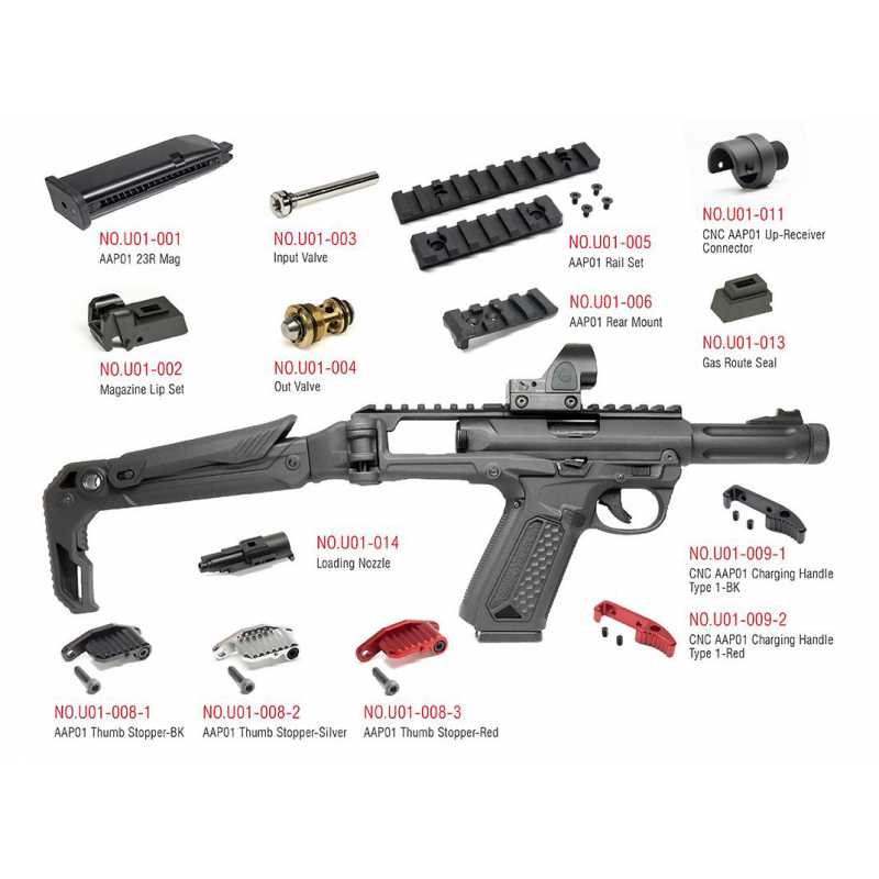 FUKU-2 CNC Upper Set V2 – CUTOUT (dlhá verzia) od CTM TAC v provedení čierna a červená. Pre plynové airsoftové pištole AAP-01 a AAP-01C GBB. Kompletná CNC horná časť rámu. Odľahčená CUTOUT verzia s agresívnym dizajnom. RIS lišty, 14 mm CCW závit a svetlovodné mieridlá. Fakticky Ultra Krásny Upgrade.