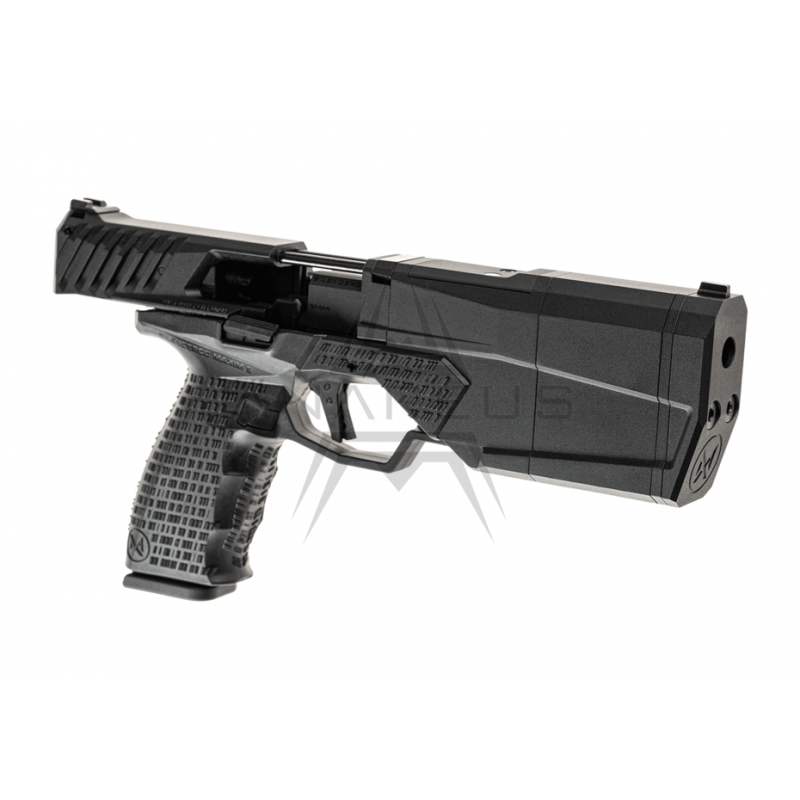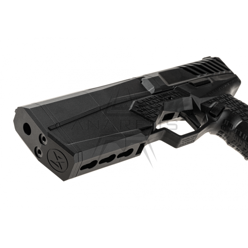 Pištoľ Krytac SilencerCo MAXIM 9, starostlivo skonštruovaná z leteckého hliníka a vystužená polymérovými vláknami, dosahuje dokonalú rovnováhu medzi zníženou hmotnosťou a nekompromisnou odolnosťou, čo zaručuje jej spoľahlivosť aj v tých najnáročnejších situáciách.