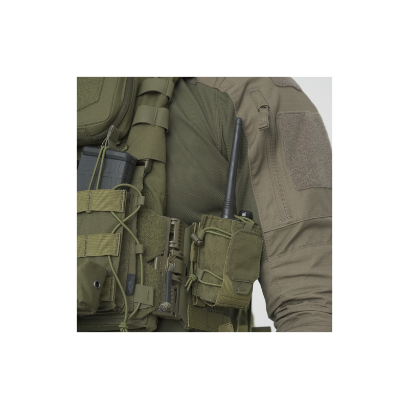 Elastická šnúrka nielen pevne drží zariadenie na mieste, ale zároveň zabezpečuje jednoduchý prístup k ovládacím prvkom vysielačky. MOLLE systém umožňuje jednoduché pripevnenie na nosič plátov, batoh alebo inú výstroj. Sumka je ideálna pre ozbrojené zložky, ktoré potrebujú mať komunikačné vybavenie vždy po ruke.