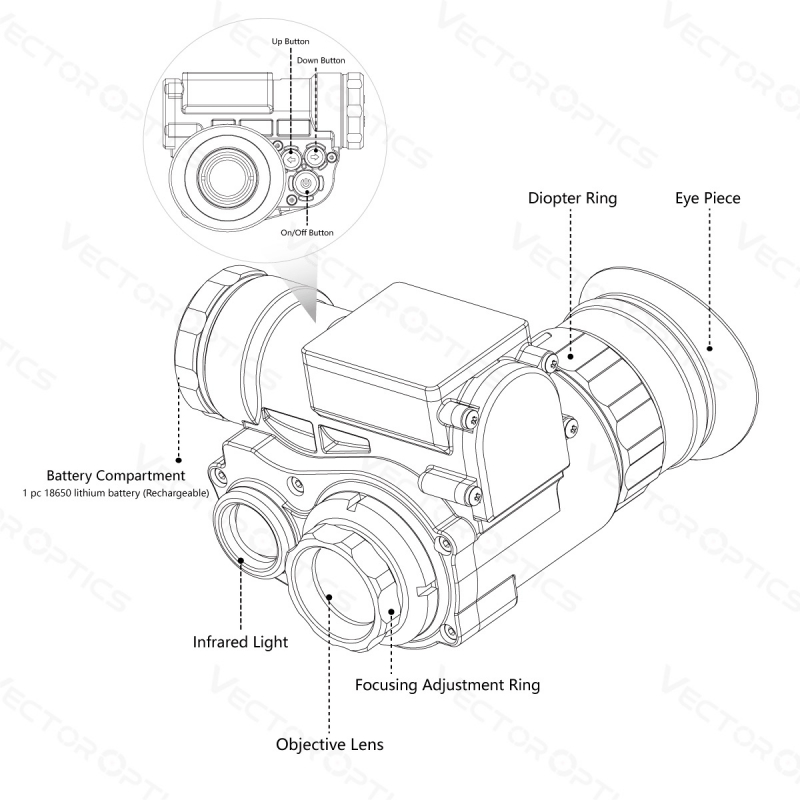 Hľadáte kvalitné a cenovo dostupné nočné videnie? Chcete mať výhodu pri nočnom hľadaní protivníkov v airsofte? Potrebujete spoľahlivé a jednoduché NVG zariadenie na poľovníctvo, sledovanie alebo pátracie akcie? Potom ste ho práve našli. OWLSET Digitálne nočné videnie HD 1×18 (DigiNVG) od Vector Optics je výkonný systém na nočné pozorovanie. Vďaka 1× optickému zväčšeniu a 3× digitálnemu zoomu ponúka jasný, detailný obraz Full HD 1920×1080. Vstavaný, vypínateľný IR prísvit (850 nm) umožňuje detegovať postavu až do 200 m v úplnej tme. CMOS senzor, elektronický kompas a možnosť nahrávania fotografií a videí poskytujú široké možnosti použitia tohto NVG zariadenia. S nastaviteľným zaostrením od 20 cm po nekonečno a širokým zorným poľom máte dokonalý prehľad o okolí. Celý systém váži len 245 g (s batériou) a spĺňa štandard IP66. S výdržou batérie až 5 hodín bez IR alebo 3 hodiny s IR prísvitom je pripravený na dlhé operácie. Ponúka automatické vyváženie bielej, nastavenie jasu displeja a odolné telo z ABS plastu a gumy. Okrem toho dokáže prepínať medzi tromi obrazovými paletami (čierna-biela, biela-čierna, zelená). Na montáž na prilbu slúži priložená sada OWNV-MT10 s trojramenným uchytením na jemné nastavenie polohy. Kompatibilné so štandardnými NVG montážami pre prilby typu MICH/FAST/WENDY.