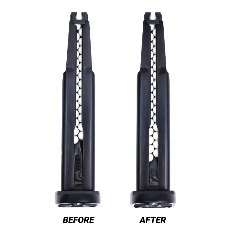 6 jezcov rozšíri kapacitu vašich zásobníkov o 4-5 BBs, pridáva funkciu zámok spúšte na signalizáciu prázdneho zásobníka a má väčšiu ťahaciu plochu pre ľahšie nabíjanie.