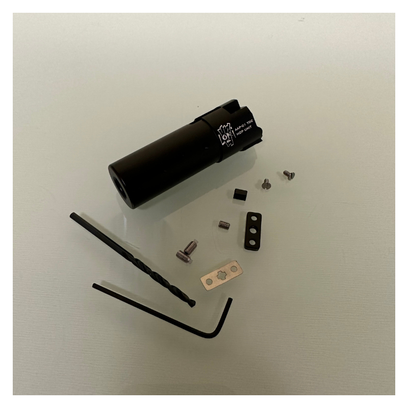 Uisťujeme vás, že hop-up jednotka "LOKI" prešla prísnym testovaním v rôznych súpravách karabín vrátane TTI, SRU Vector, AA Mamba a mnohých ďalších. Ak chcete vyvŕtať otvor TDC, jednoducho postupujte podľa inštruktážneho videa a zostavte hornú časť s prázdnou hop-up jednotkou. Pre dosiahnutie čo najlepšej presnosti odporúčame vždy, keď je to možné, použiť prítlak vrtáka.